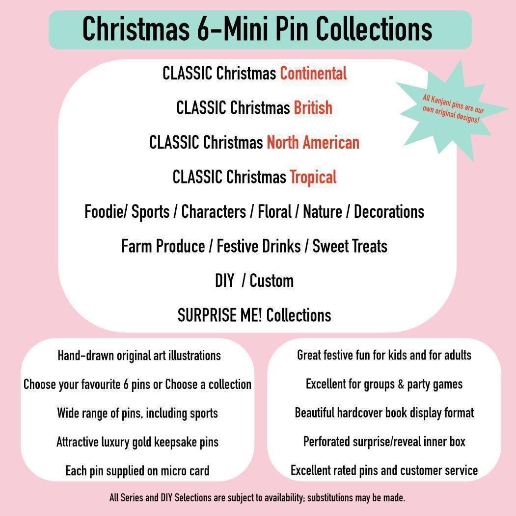 Choose 6 of our premium gold hard enamel mini pins (not limited to Christmas designs), OR simply choose a themed collection. N.B. Maximum 2 x 2025 Limited Edition (padlock) pins per 6-pin box.