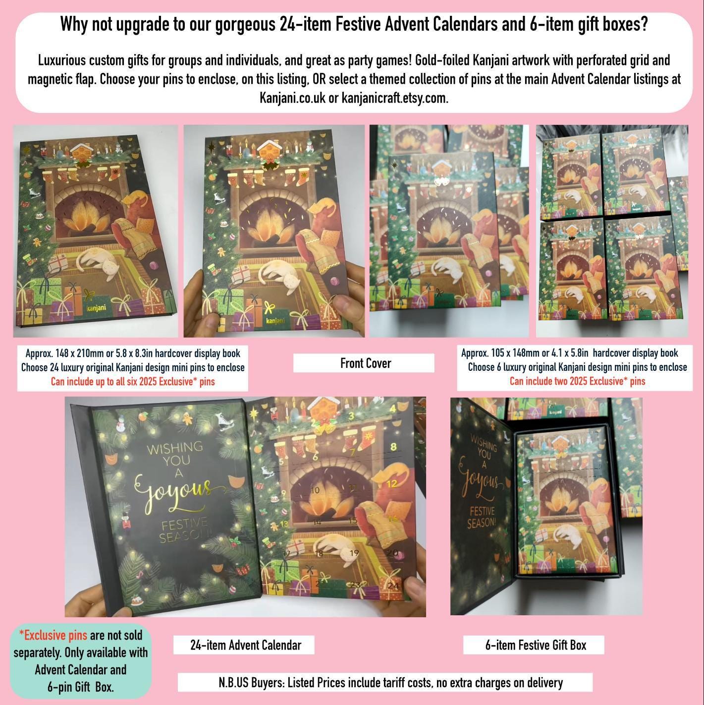 Diese wunderschöne Erinnerungskombination lässt sich Jahr für Jahr wiederverwenden, um nachhaltige Adventskalenderüberraschungen zu gestalten. Sie wird auf einer schönen und stabilen 800-g/m²-Karte im A7-Format (7,4 x 10,4 cm) geliefert und kann darauf ausgestellt werden. Wir planen, jedes Jahr weitere Mini-Pin-Designs hinzuzufügen. Vorbestellungen sind möglich – Versand ab 13. Oktober.